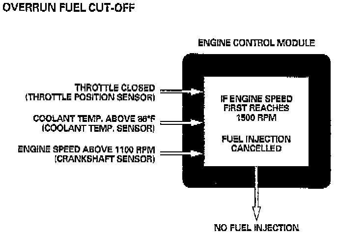 In order to improve fuel economy end aid in controlling exhaust emission, the ECM cancels fuel injection during engine overrun conditions. The ECM determines overrun conditions from inputs received from the throttle position sensor, crankshaft sensor and coolant temperature sensor.