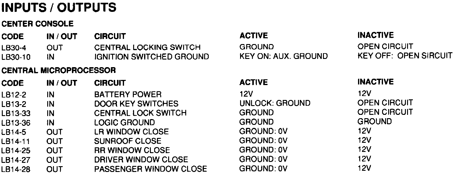 Powered Windows & Sun Roof - Components, Connectors, Grounds, & Inputs/Outputs: