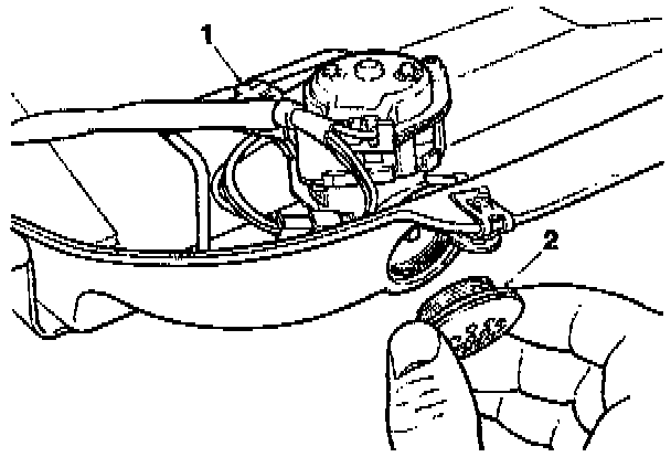 - With the ECM cover removed, release the sensor to wire frame fixing screw (1) and unscrew inlet cover (2).