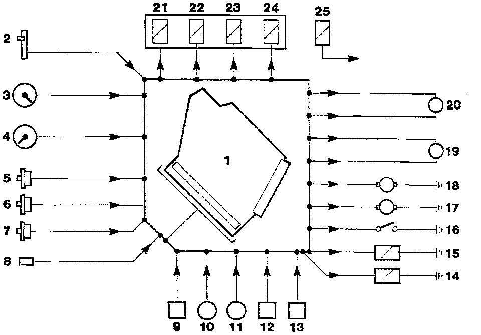 - A digital micro-processor within the A/CCM receives data signals from operator controlled switches. Comparison of these signals with those returned from system temperature sensors and feedback devices results in the appropriate output voltage changes needed to vary: Blower motor speed, Flap position, and those Solenoids which respond to operator selected temperature demand.