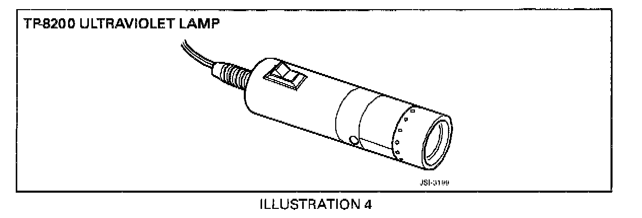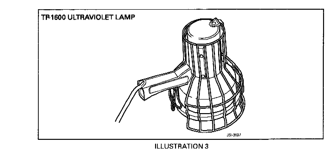 ^ When operating the TP-1600 110 VAC lamp (Illustration 3), 3 to 5 minutes must be allowed for warm-up.