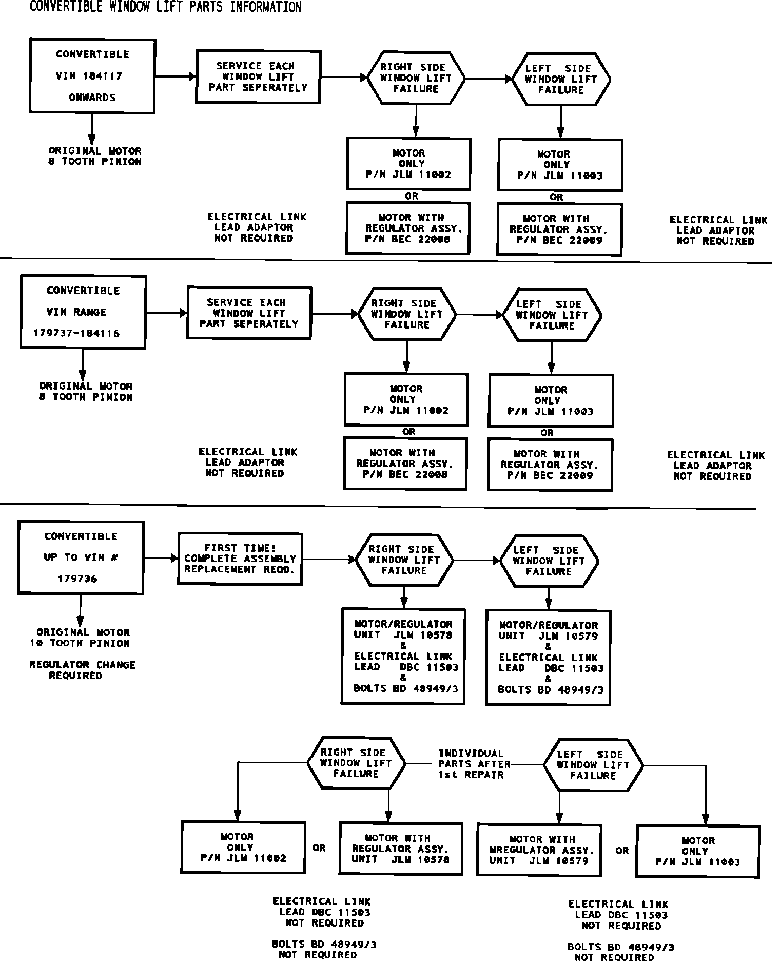 From VIN 184117-onwards, revised window lift motors (incorporating an 8 tooth drive pinion) were introduced for the front door glass.