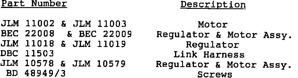 Refer to the VIN information included in the flow chart of this bulletin to ensure that the correct motor kit, regulator, link harness and hardware are installed.