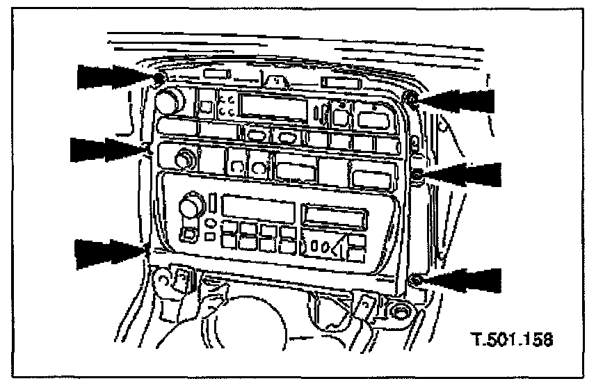 1. Position air conditioning switch control module on radio console and install module securing screws.