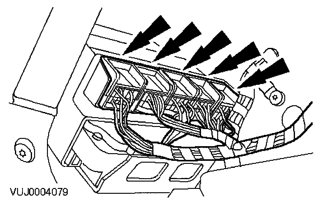 CAUTION: Prior to removal of the module, it is necessary to upload module configuration information to the approved Jaguar diagnostic system. This information needs to be downloaded into the new module once installed.