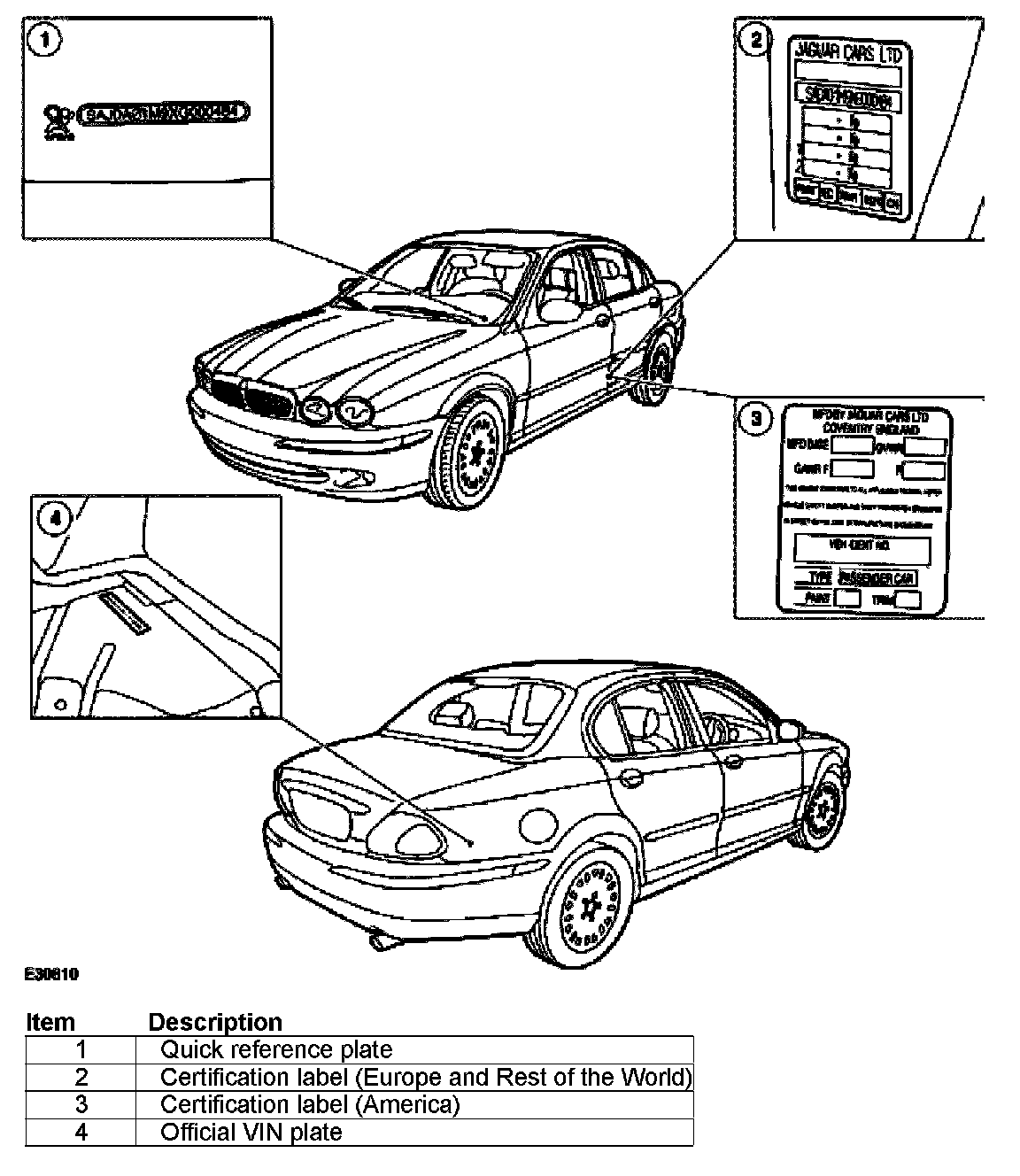 The vehicle identification number is also located on a vehicle certification label which is mounted on the bottom of the 'B' Post.