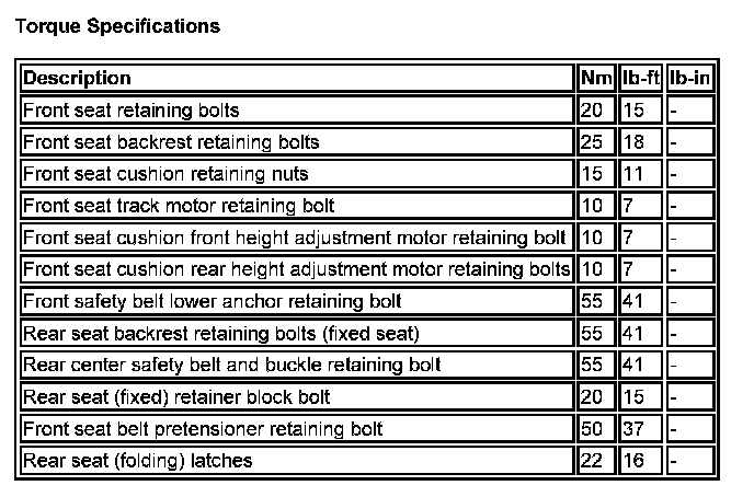 Seats: Specifications