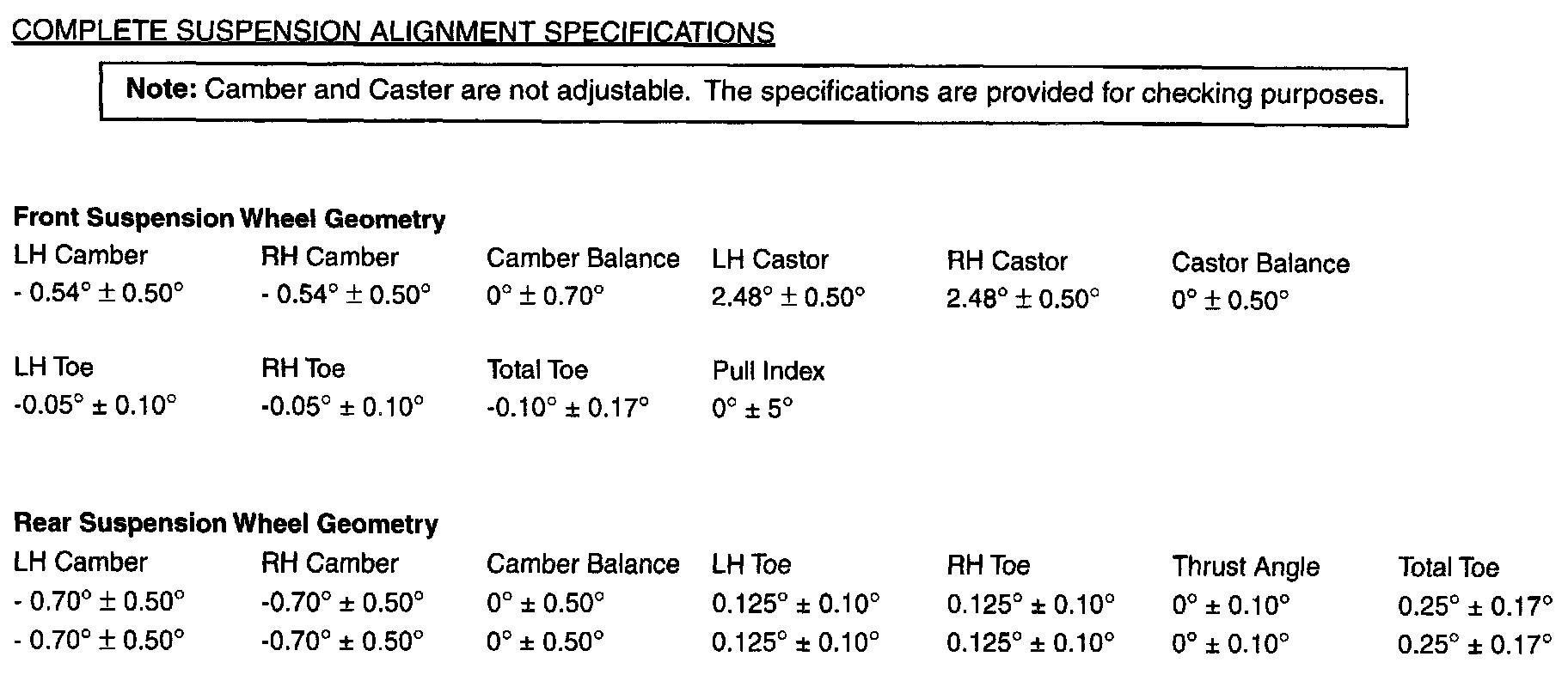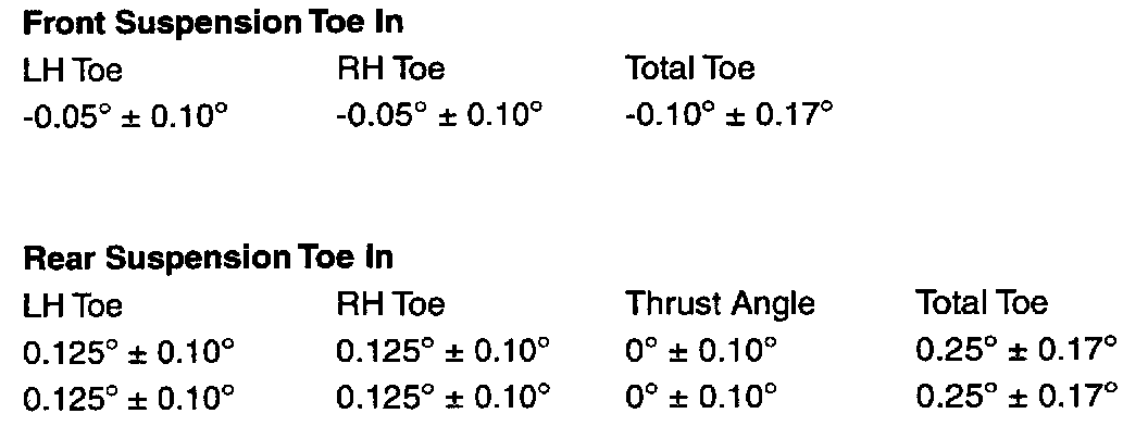 As a result of ongoing product development, the toe settings for X-TYPE vehicles have been changed from VIN C19250.