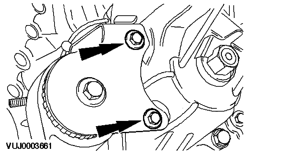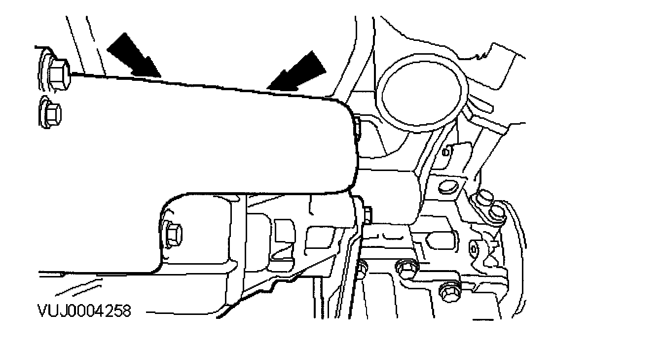 12. Install the engine anti-roll restrictor bracket top retaining bolts.
