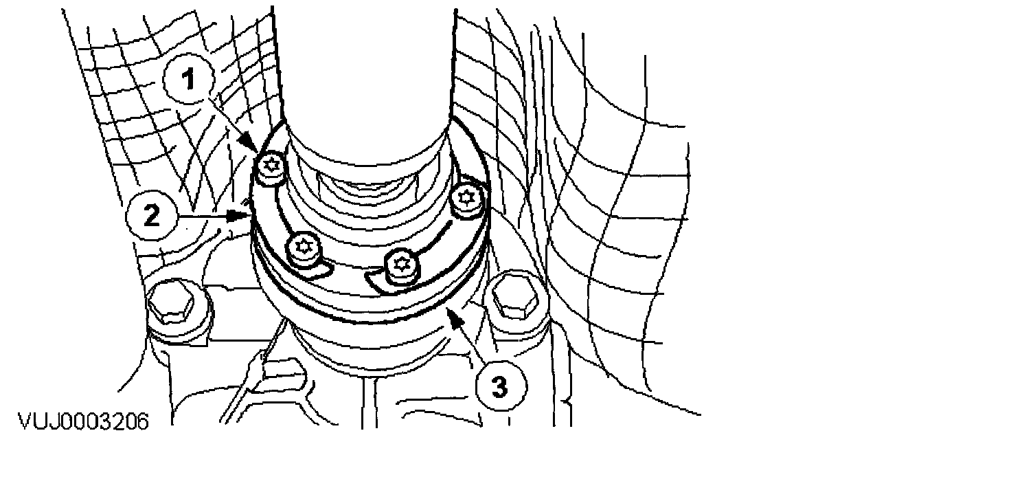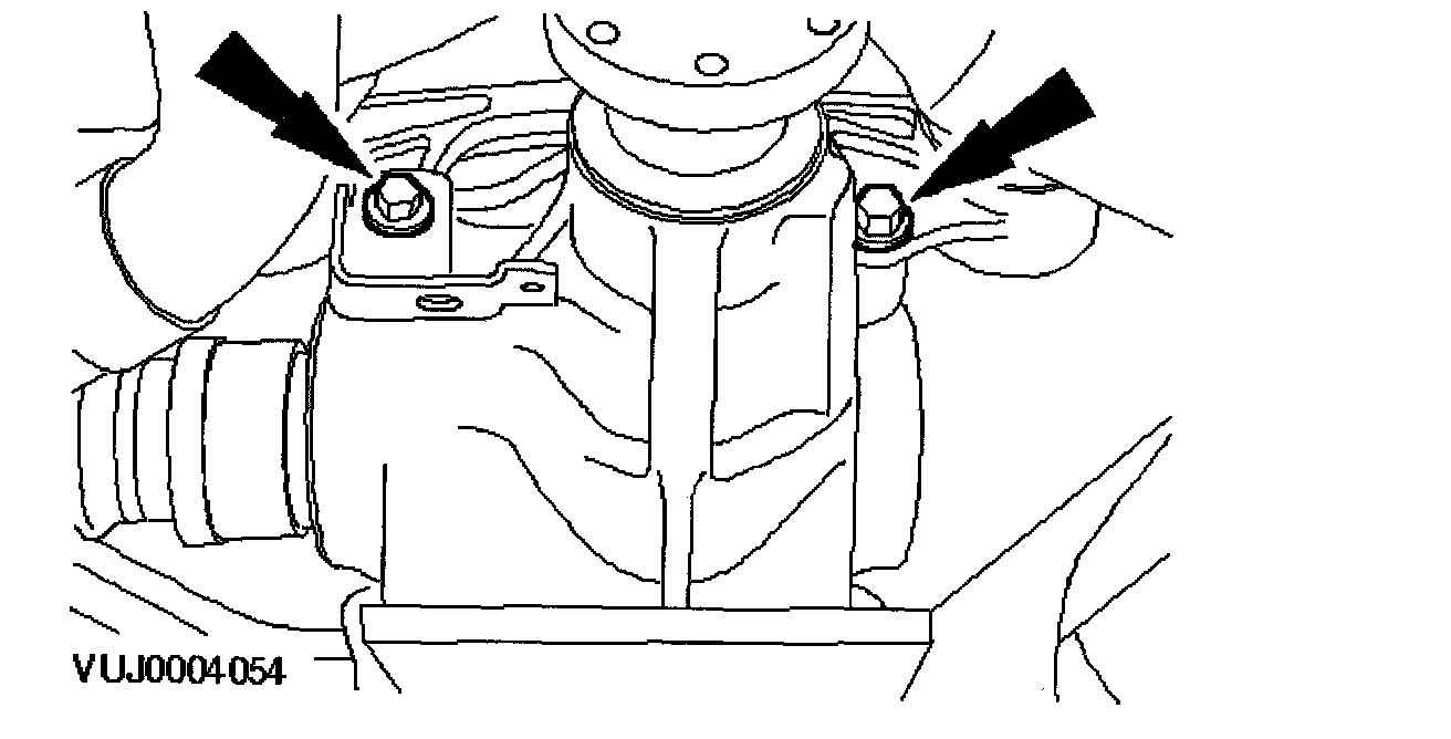 12. Tighten the drive shaft center bearing retaining bolts to 25 Nm.