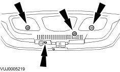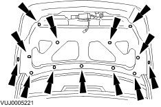 1. Remove the luggage compartment lid latch trim panel retaining screw covers.