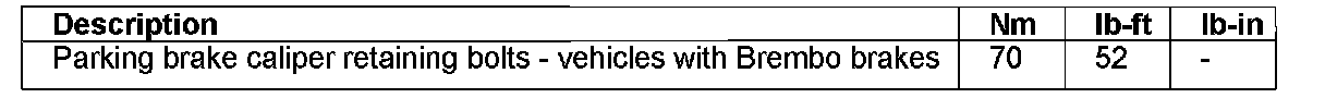 Parking Brake System: Specifications