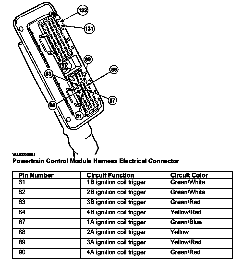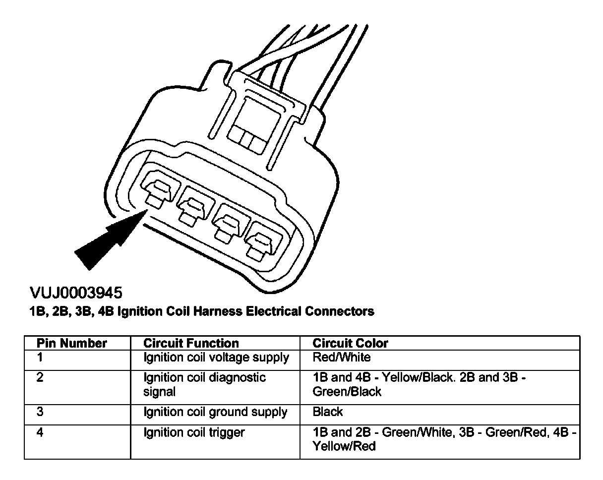 1B, 2B, 3B, 4B, Ignition Coil Harness Electrical Connectors: