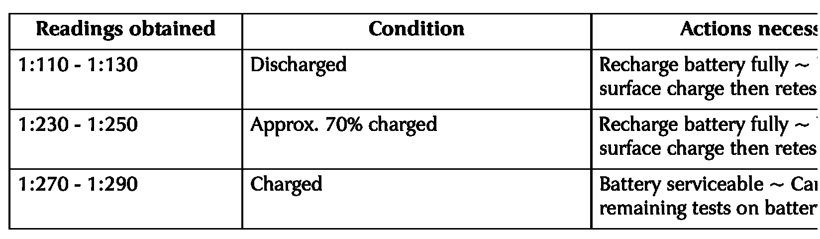 - Repeat the above operation for the remaining five cells and enter the readings onto the battery report form. Battery Report Form (Diagnosis)