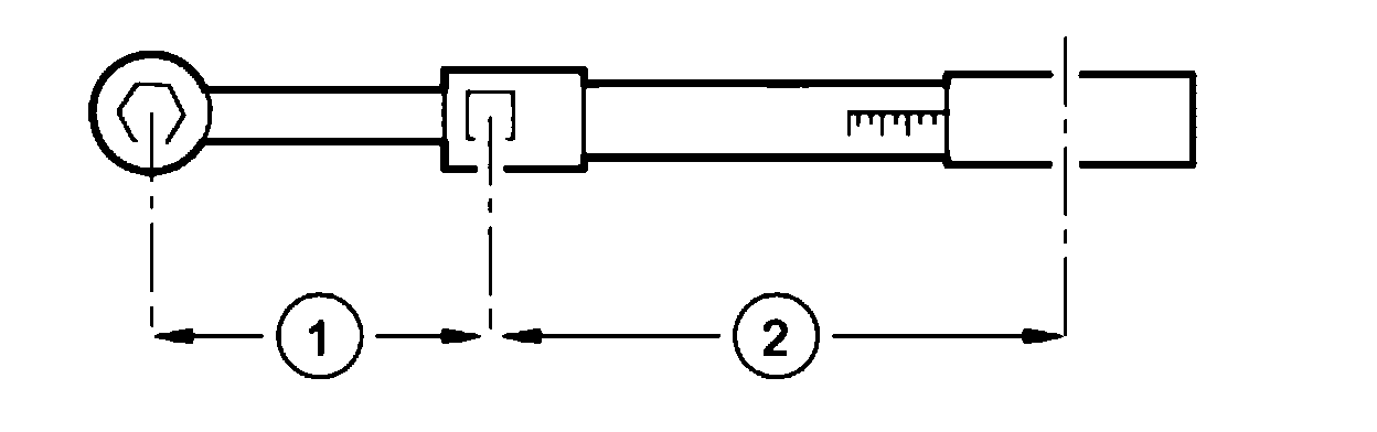 ^ Step 2. Add the effective length of the torque adaptor (1) to the effective length of the torque wrench (2).