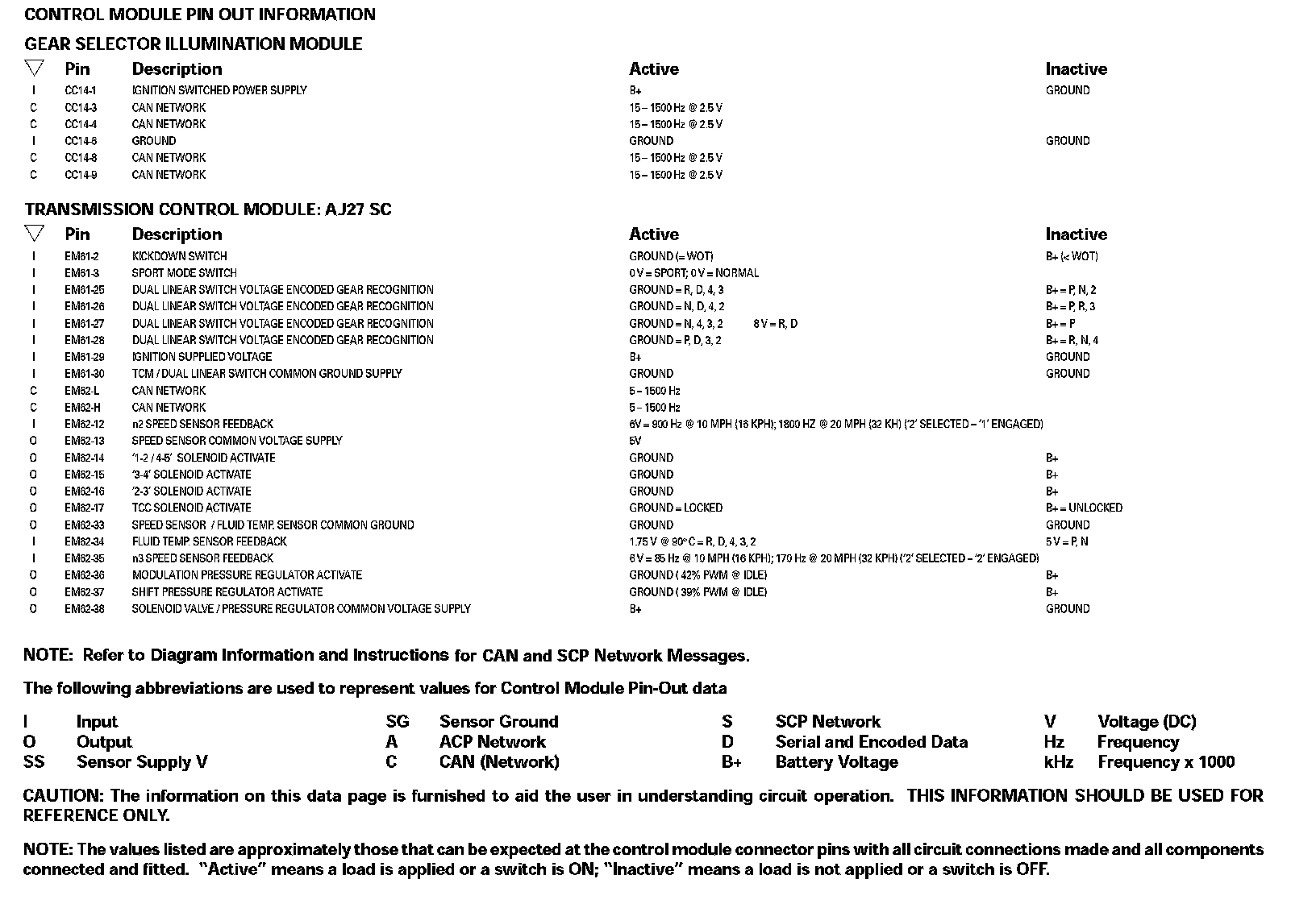TRANSMISSION CONTROL MODULE: AJ27 SC: