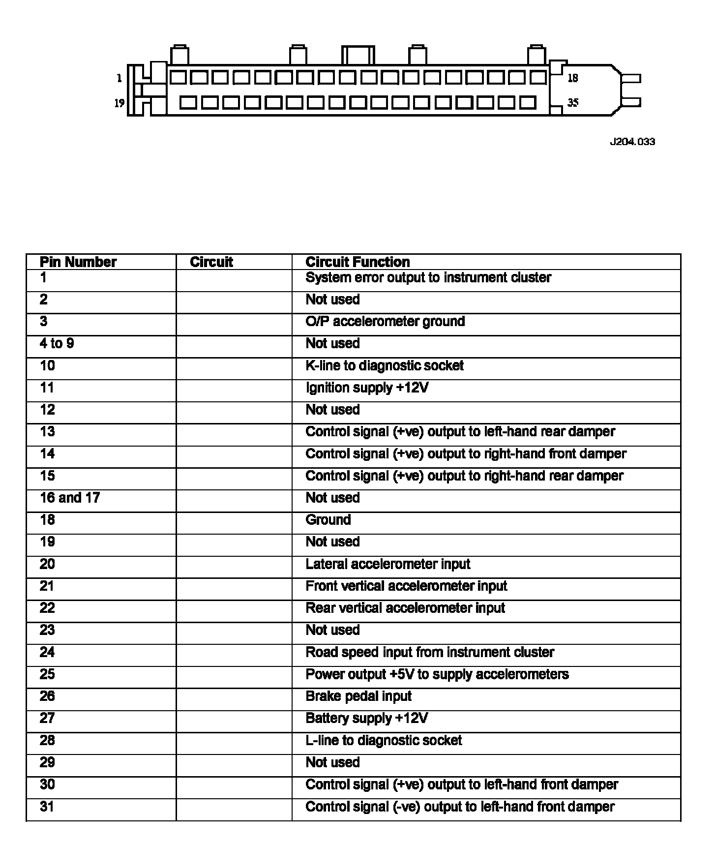 Connector Pin Identity Chart for EM068