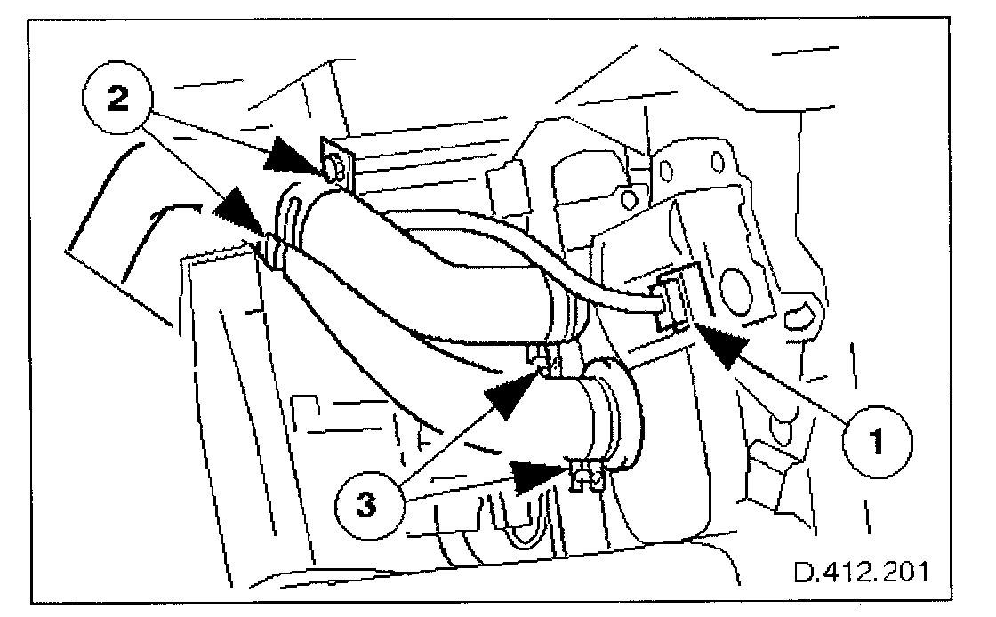 NOTE: Position suitable cloth to absorb coolant leakage before disconnecting pipes.