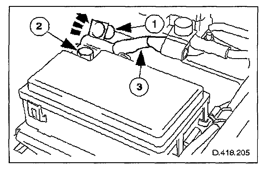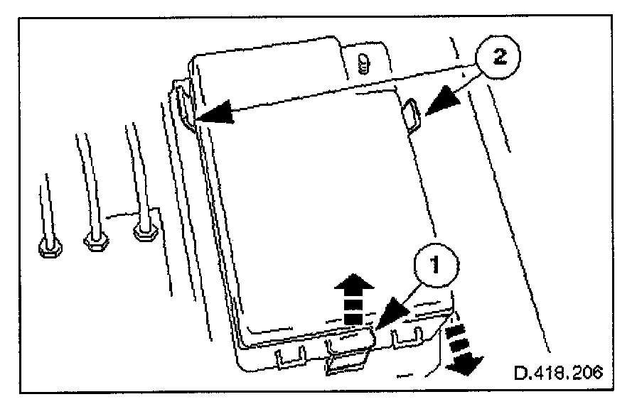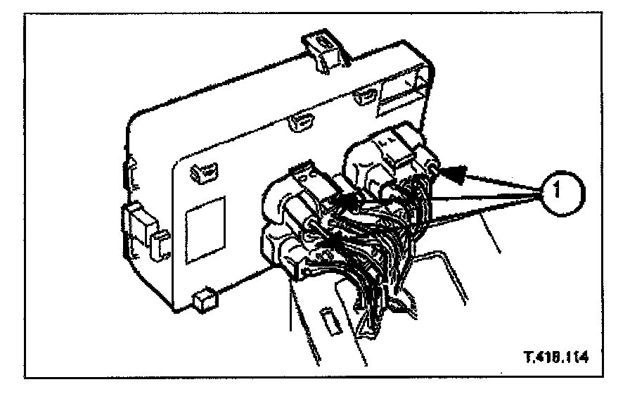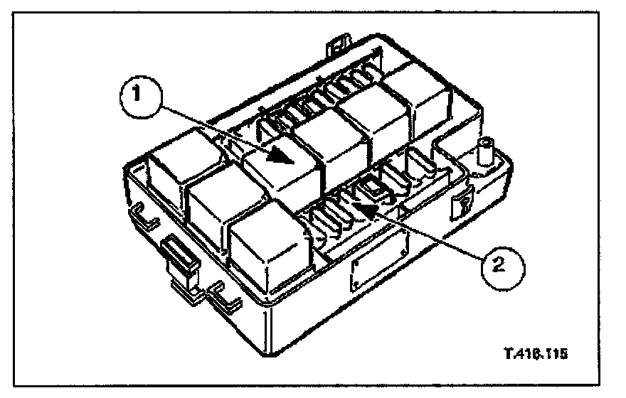 1. Release securing latch, upwards, displace fuse box outwards and remove from mounting panel.