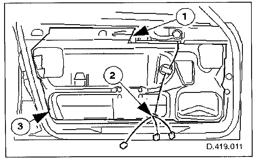 2. Remove door casing; Refer to 'Body and Frame, Doors, Hood and Trunk, Door.' Service and Repair