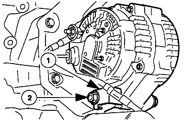 1. From above, position the generator and fit the upper mounting bolt and nut, but do not fully tighten.