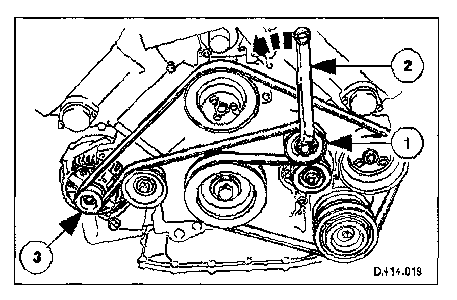 2. Using spanner (Churchill JD-230 or Snap On XDHM 1415) on the centre bolt of the belt tensioner idler pulley, rotate the adjuster against spring tension.