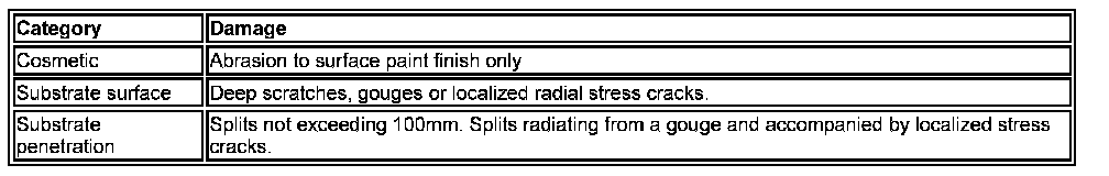 Repair of accepted damage for categories 2 and 3 may be carried out using 3M '5900 FPRM' (Flexible part repair material) or Kent Industries 'Urepatch'. Repair product manufacturers' recommendations and procedures must always be strictly followed.