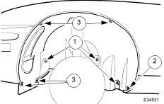 1. Slacken and remove three plastic nuts longitudinally securing wheel arch liner to body.