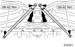 7. Tighten subframe bolts shown.