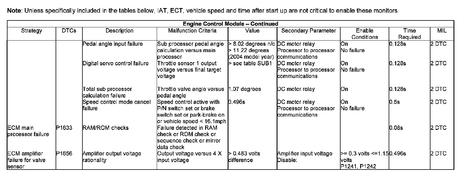 This monitor duplicates various sections of the throttle control functions performed by the sub processor in the main processor and continuously compares the results during ignition on. In case of the sub processor value differing from the main processor value by more than a calibratable amount, a failure judgment is made.