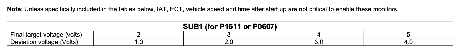 At processor initialization, this monitor checks whether the Read Only Memory (ROM) checksum for the sub processor monitor is OK. If the checksums do not agree, a failure judgment is made. The same check is performed for the Random Access Memory (RAM) area for the sub processor monitor. If the checksums do not agree, a failure judgment is made. During ignition on, the main processor mirror checks certain sequence, RAM and ROM calculations with the sub processor. If the mirror checks do not agree, a failure judgment is made.