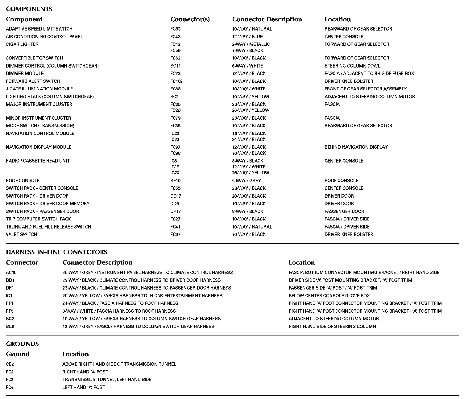Locations: The location views for Ground Points, In-Line Harness Connectors, Harnesses, and Control Modules depicted within these diagrams can be found at Vehicle/Locations. Locations