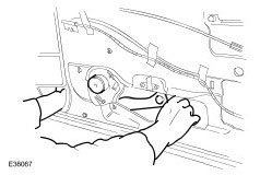 7. Supporting door glass, remove linen tape and lower glass onto regulator assembly.