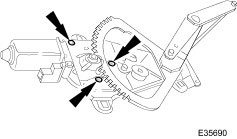 4. Fit but do not tighten motor to door securing screws and regulator channel securing nut.