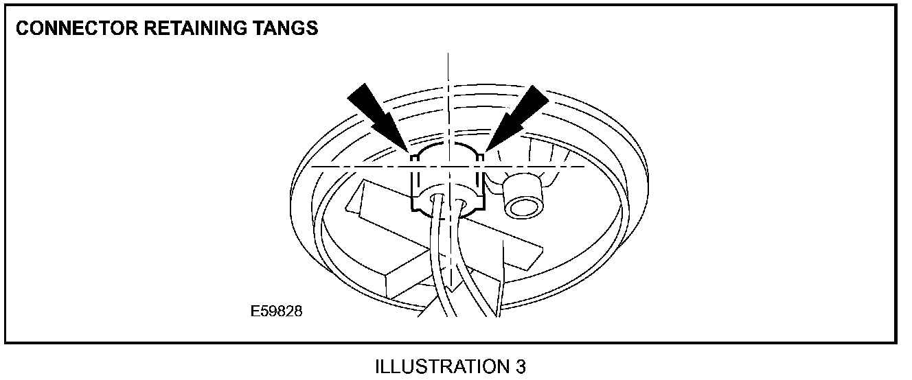 7. Depress the retaining tangs of the connector body and release the connector from the flange (Illustration 3).