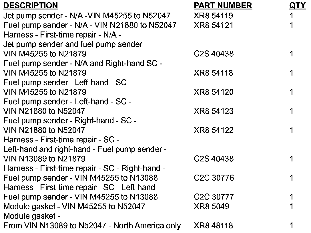 On original jet pump modules on Normally Aspirated (N/A) vehicles between VINs M45245 to M79334, a complete jet pump module must be installed. Only after the original jet pump module has been replaced with the latest level module, and having a subsequent jet pump sender failure, can this Technical Bulletin be carried out.*