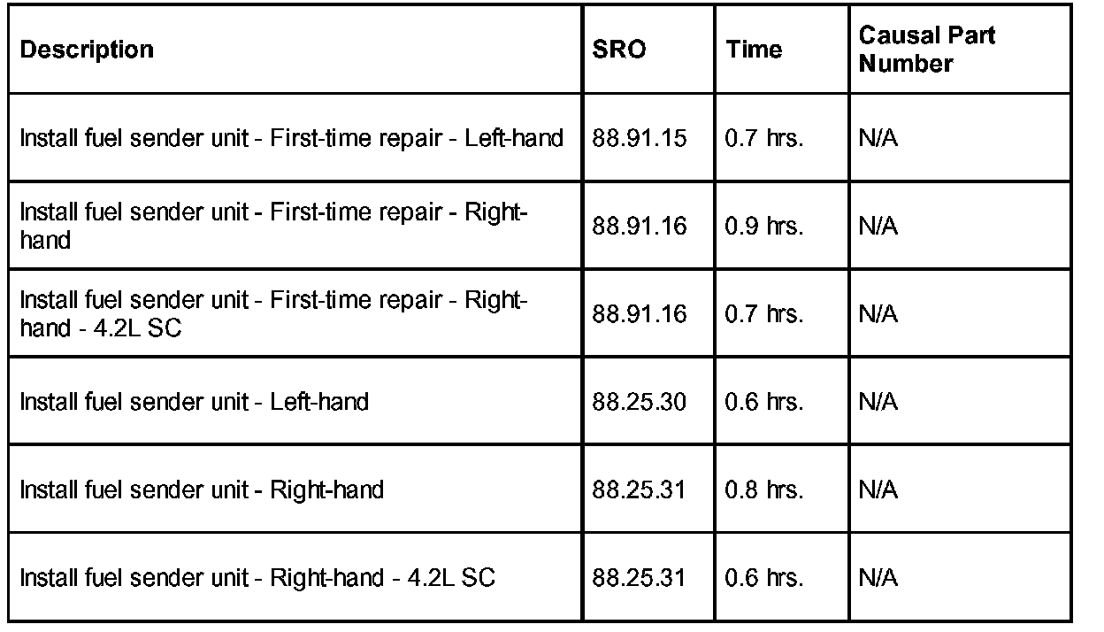 *FUEL PUMP SENDER REPLACEMENT - FIRST-TIME REPAIR ONLY