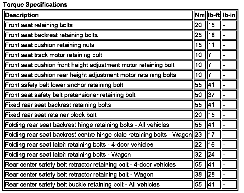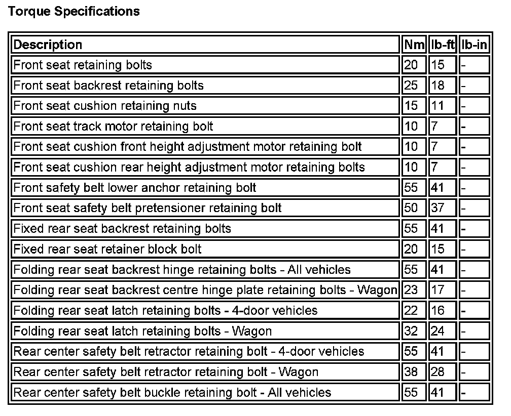Torque Specifications: