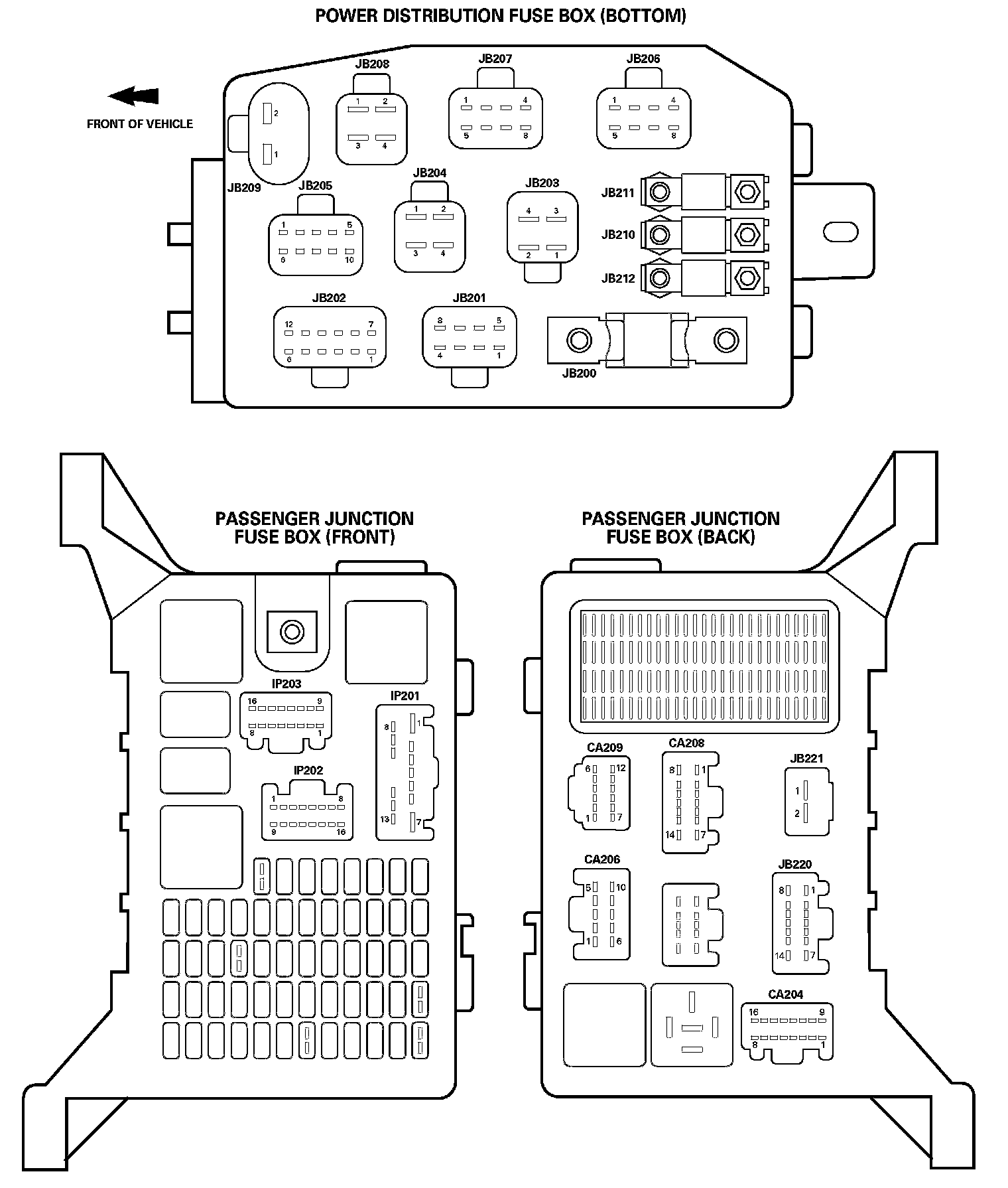 Power Distribution Fuse Box (Bottom):