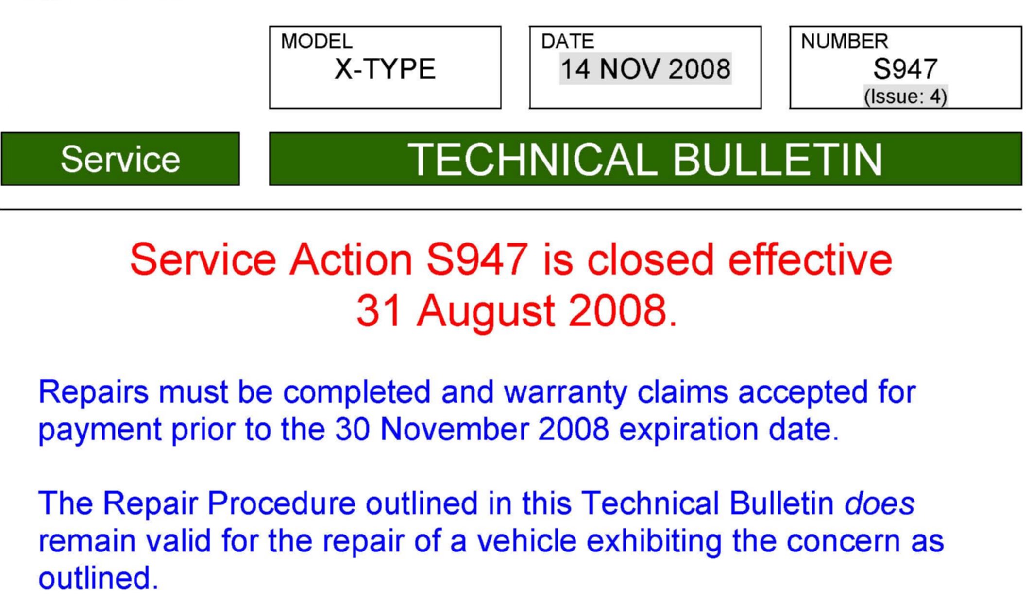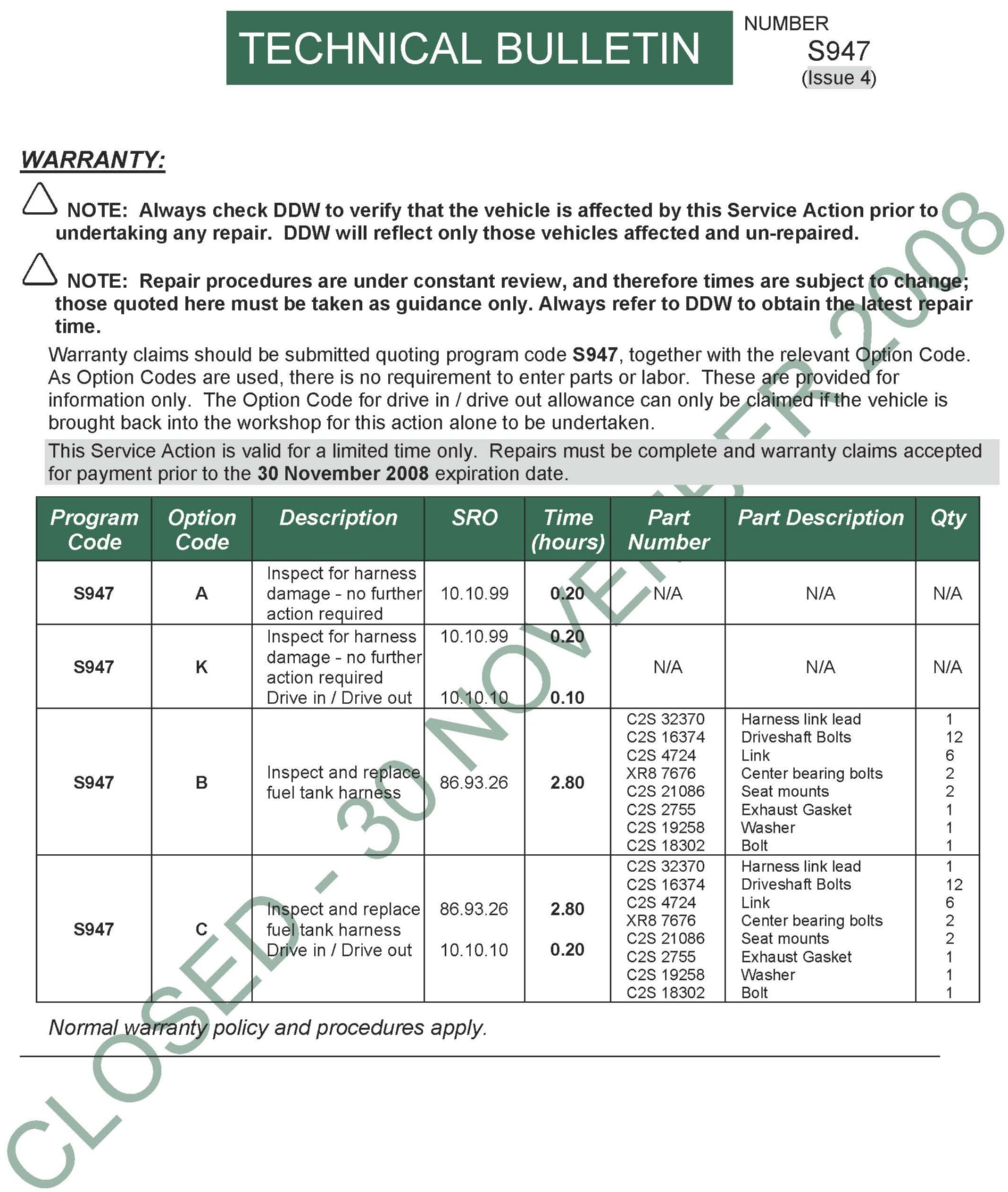 Campaign - CLOSURE NOTIFICATION/Repair Still Valid