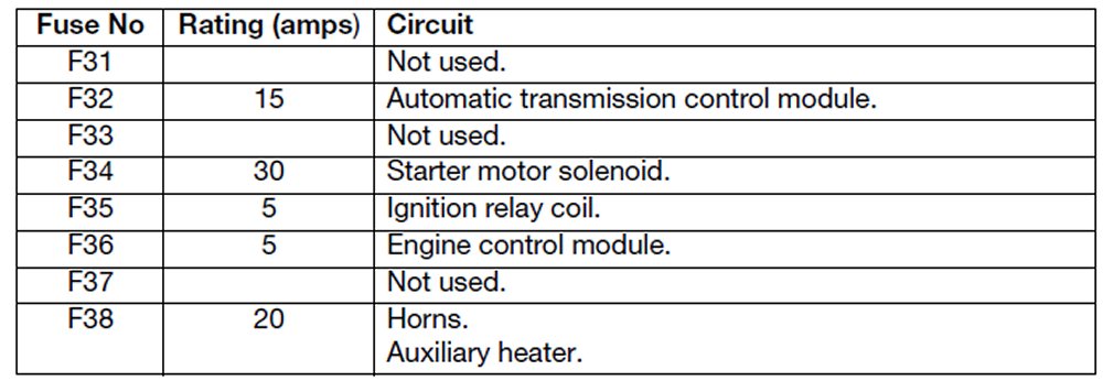 Engine compartment fuses (F31 - F38)