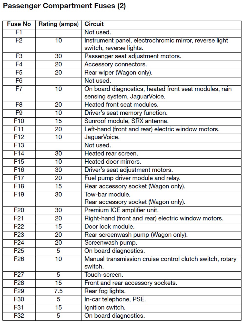 Passenger Compartment Fuses (F1 - F32)