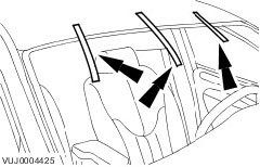 9. Apply a suitable protective tape to the front edge of the headliner.