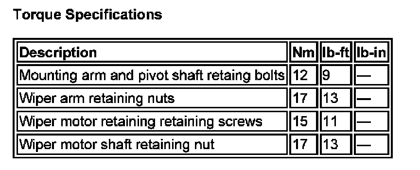 Wiper and Washer Systems: Specifications