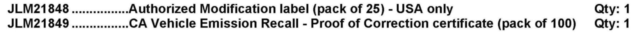 Owners will be notified by Customer Letter of this Recall with the request that they contact a dealer to have the update(s) performed. At the time of customer appointment, ensure that all outstanding service campaigns for each individual vehicle are identified and allocate sufficient time and resources to complete all campaigns. To identify repaired vehicles, US dealers must complete and install a Service Action 'Authorized Modifications' label on the radiator support panel. California dealers are required by the California Code of Regulations to complete a salmon-colored 'Vehicle Emissions Recall - Proof of Correction' certificate. This form must be provided to the customer for vehicles registered in California when the Recall work has been completed.