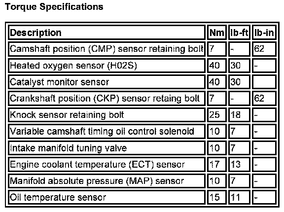 Torque Specifications: