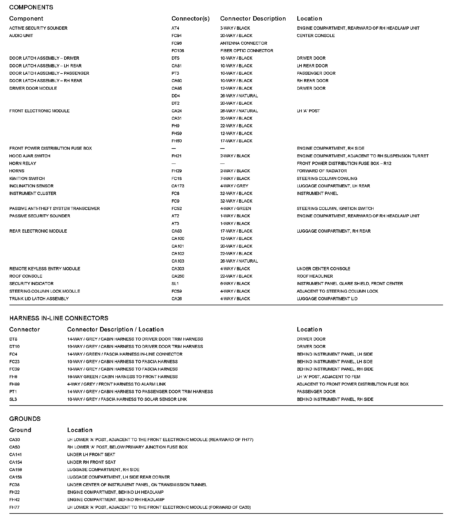 Locations: The location views for Ground Points, In-Line Harnesses, and Control Modules depicted within these diagrams can be found at Vehicle/Locations. Locations