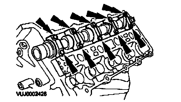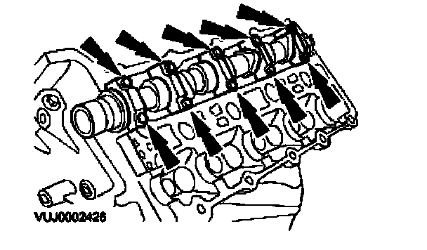 CAUTION: Alternate bolt tightening to correctly seat the camshaft bearing caps.