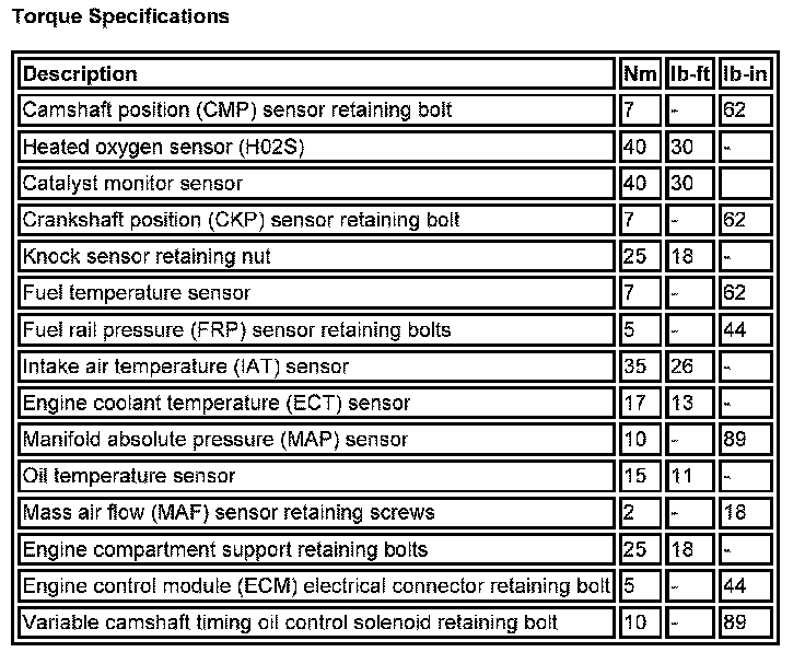 Torque Specifications: