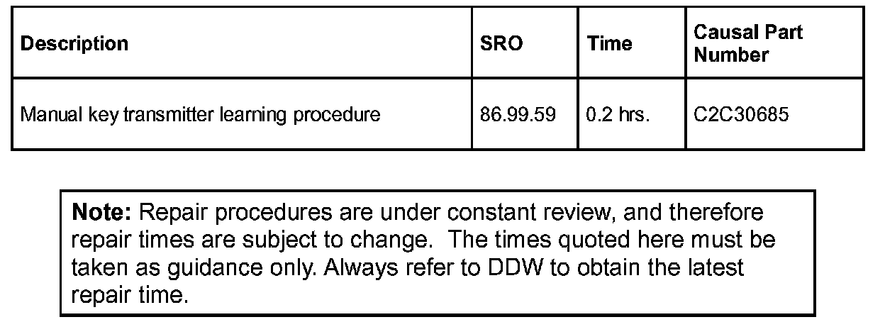 A new procedure has been developed to manually program the key transmitters for 2004 MY-ON XJ range vehicles.